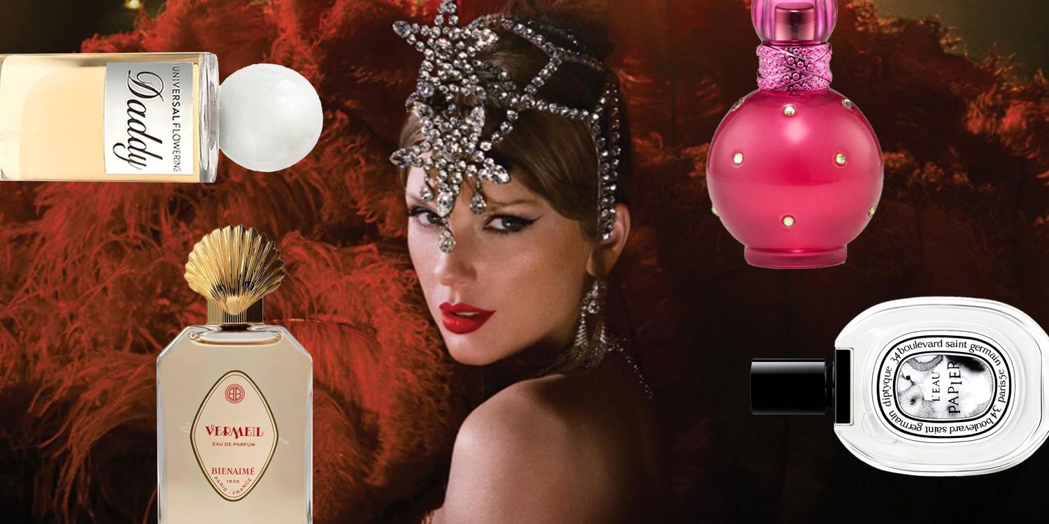 Taylor Swift’s highly–anticipated Life of a Showgirl is finally here, and the album is a kaleidoscope of moody-sweet pop and glamour—bold, exuberant, and unapologetically maximalist. Like perfume, music carries an invisible architecture: built on memory and emotion, it conjures worlds we can’t see but can somehow immediately feel. Taylor Swift is a cross-sensory artist in her own right—assigning colors to emotions, shaping eras through textures and tones, and painting vivid, image-driven scenes—a fact that really shines on her 12th album.